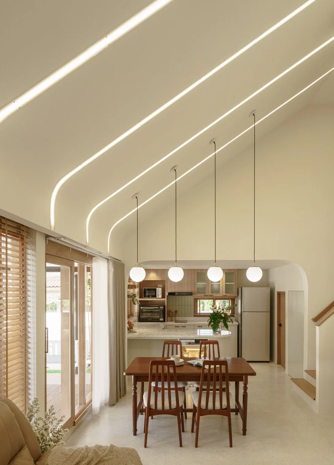 Experience a residence with elevated playfulness and curved lines, drawing inspiration from the nostalgia of the 80s era. Our design ethos transforms this home to be contemporary, comfortable, and simple, integrating new functionalities to align with the changing lifestyles of the occupants. With an increase in usable space, we revitalized the existing structure while preserving the essence and style of the original home. The owners' desire to retain old furniture and cherished possessions served as a key influence, guiding us to create a design that seamlessly merges the past with the present.